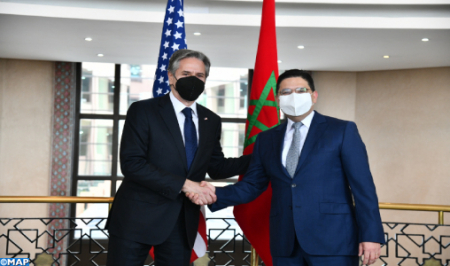 Et de souligner l’importance de la visite au Maroc du Secrétaire d’État américain qui illustre la solidité de ce partenariat et les potentialités qu’il s’agit d’exploiter dans ce cadre au profit des intérêts des deux pays et des deux peuples et aussi en faveur de la sécurité, la stabilité et le développement dans des régions qui font l’objet d’un intérêt de premier plan.