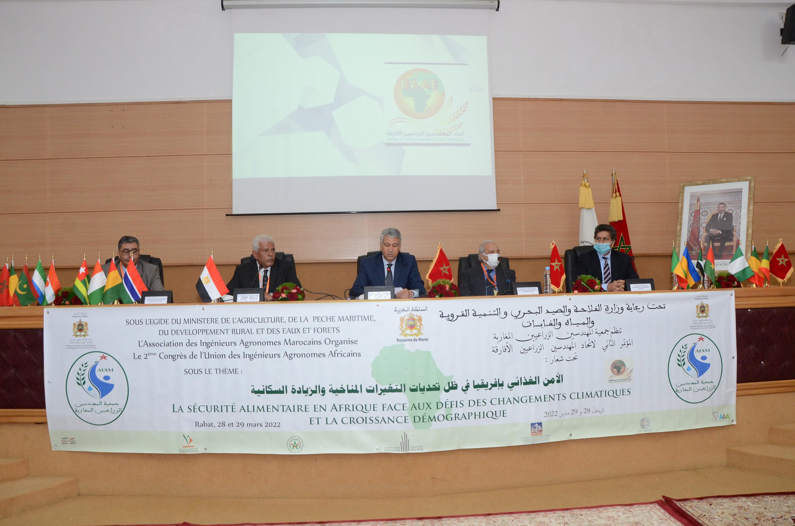 Conformément aux décisions prises lors du congrès organisationnel de l’Union des Ingénieurs Agronomes Africains tenu à Sharm-El Cheikh à la République Arabe d’Égypte les 8 et 9 février 2020; s’est tenue le 2ème congrès de l’Union du 27 au 29 mars 2022 à Rabat au Royaume du Maroc, sous l’égide du Ministère de l’Agriculture, de la Pêche Maritime, du Développement Rural et des Eaux et Forêts, sous le thème: « Sécurité alimentaire en Afrique Face aux défis des changements climatiques et de la croissance démographique ».