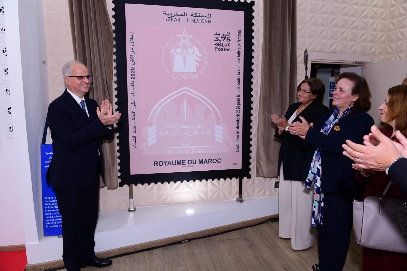 A l’occasion de la journée nationale de la femme (10 octobre 2022), le Groupe Barid Al-Maghrib lance une émission spéciale de timbre-poste commémorant la « Déclaration de Marrakech 2020 pour la lutte contre la violence faite aux femmes » qui a été adoptée en mars 2020, sous la présidence effective de Son Altesse Royale la Princesse Lalla Meryem.