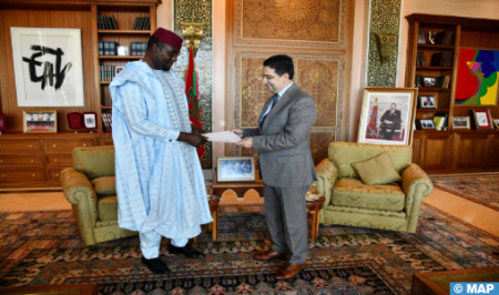 Le ministre des Affaires étrangères, de la Coopération africaine et des Marocains résidant à l’étranger, Nasser Bourita, a reçu, vendredi à Rabat, le ministre d’Etat, ministre de l’Énergie et des Énergies Renouvelables du Niger, Ibrahim Yacoubou, porteur d’un message du Président de la République du Niger, Mohamed Bazoum, à SM le Roi Mohammed VI.