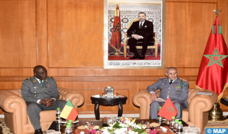 Rabat – Sur Hautes Instructions de Sa Majesté le Roi, Chef Suprême et Chef d’Etat-Major Général des Forces Armées Royales, le Général de Corps d’Armée, Inspecteur Général des FAR et Commandant la Zone Sud, a reçu, mardi au niveau de l’Etat-Major Général des FAR à Rabat, le Général de Brigade Fructueux Gbaguidi, Chef d’Etat-Major Général des Forces armées béninoises.