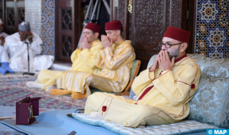 Rabat – Sa Majesté le Roi Mohammed VI, Amir Al Mouminine, que Dieu L’assiste, accompagné de SAR le Prince Héritier Moulay El Hassan, de SAR le Prince Moulay Rachid et de SA le Prince Moulay Ismail, a présidé, vendredi au Palais Royal à Rabat, la deuxième causerie religieuse du mois sacré de Ramadan.