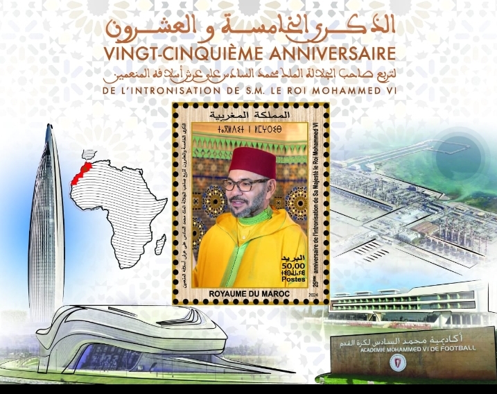 Ce bloc de timbre-poste enrichit la collection philatélique émise par Barid Al-Maghrib sous le signe de l’innovation pour célébrer des événements nationaux. On peut citer le bloc-feuillet célébrant le « 20ème Anniversaire de l’Intronisation de Sa Majesté le Roi Mohammed VI » en 2019, imprimé avec dorure or et perforation spéciale ; le bloc-feuillet « 50ème Anniversaire de Sa Majesté le Roi Mohammed VI » en 2013, imprimé en fil de soie 100% naturelle, et le bloc-feuillet et le timbre-poste lenticulaire « 10ème Anniversaire de l’Intronisation de Sa Majesté le Roi Mohammed VI » en 2009, imprimés respectivement selon la technique du gaufrage, de la dorure et de l’imagerie lenticulaire.