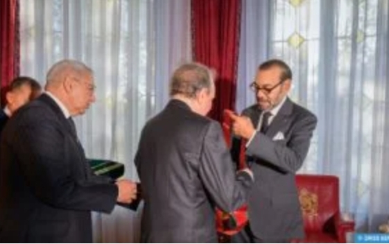 SM le Roi Mohammed VI, que Dieu Le Glorifie, a également reçu M. Ahmed Lahlimi Alami, ancien Haut Commissaire au Plan, que le Souverain a décoré du Grand Cordon du Wissam Al Arch ».